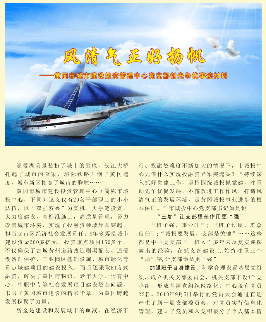黃岡市城市建設(shè)投資管理中心黨支部創(chuàng)先爭(zhēng)優(yōu)事跡材料