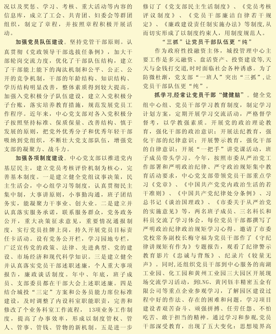 黃岡市城市建設(shè)投資管理中心黨支部創(chuàng)先爭優(yōu)事跡材料