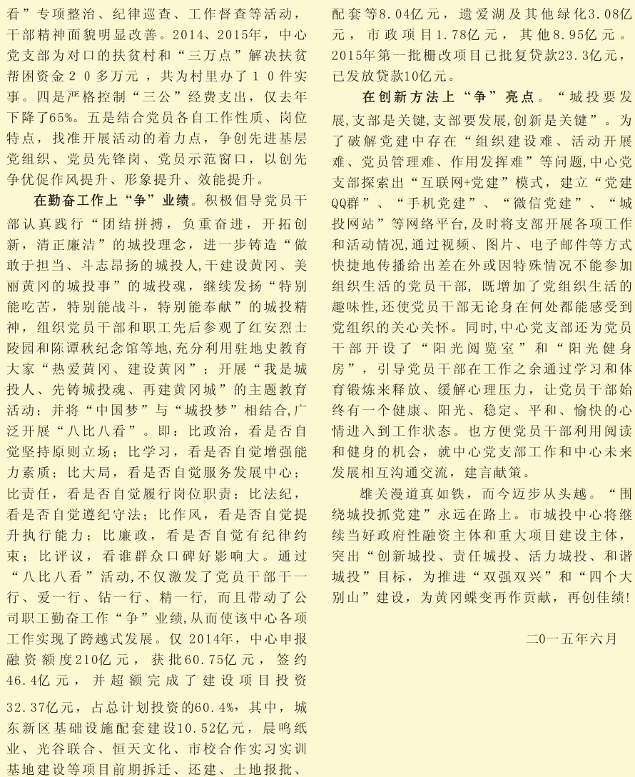 黃岡市城市建設(shè)投資管理中心黨支部創(chuàng)先爭(zhēng)優(yōu)事跡材料