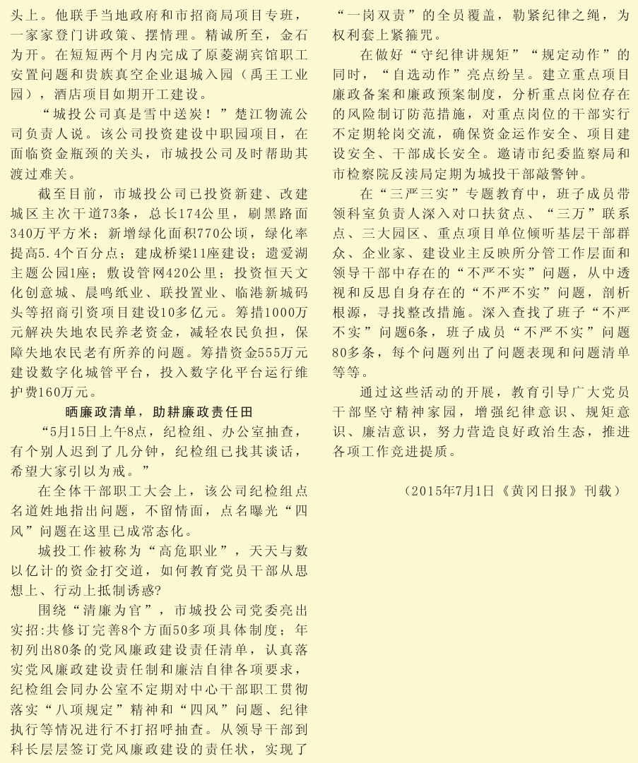 黃岡市城投公司抓黨建嚴紀律促發(fā)展紀實