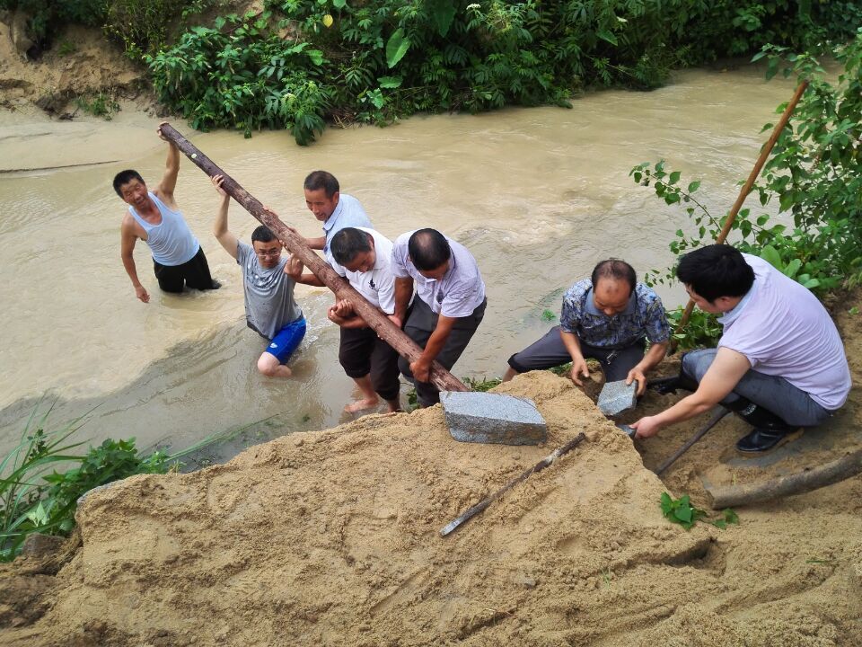 黑石寨村背靠大山,兩條河流貫穿該村全境,雨下一天要防洪,晴上三天要抗旱。7月1日,英山縣全境再次遭受暴雨的蹂躪,全縣上下道路、橋梁、河堤沖毀,房屋倒塌,農(nóng)田漫灌一片汪洋。7月3日上午,天剛放晴,他利用好雨停間隙帶領(lǐng)一隊人員在一組、二組對土坯房住戶、查水庫及田垅逐一排查時,突然接到四組組長王友福電話,該組位于兩山河溝交匯處河堤經(jīng)河水沖刷突然塌方,直接威脅堤外群眾生命財產(chǎn)和進(jìn)村唯一主干道安全。他迅速帶領(lǐng)隊員馬不停蹄的趕到塌方處。