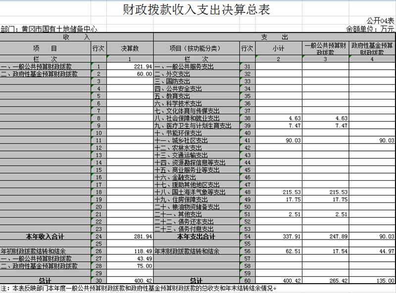 中心下未設(shè)二級(jí)單位,本決算范圍僅包括黃岡市國有土地儲(chǔ)備中心。